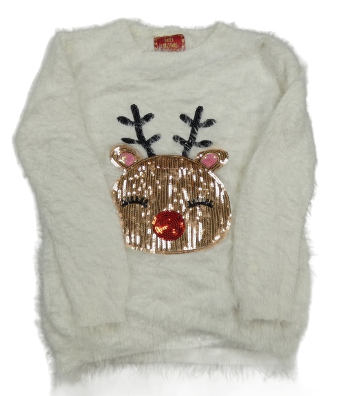 Smetanový chlupatý svetr se sobem z flitrů Yd.