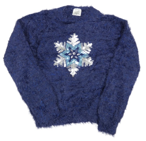 Tmavomodrý třpytivý chlupatý svetr s vločkou z flitrů a kamínků Lily & Dan