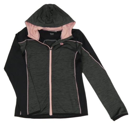 Šedo-černo-růžová melírovaná propínací sportovní mikina s kapucí Manguun
