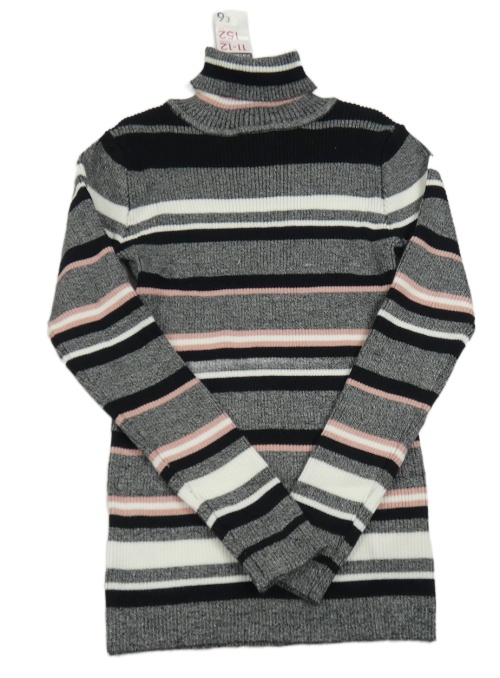 Nové - Černo-šedo-růžový pruhovaný žebrovaný svetr s rolákem Primark