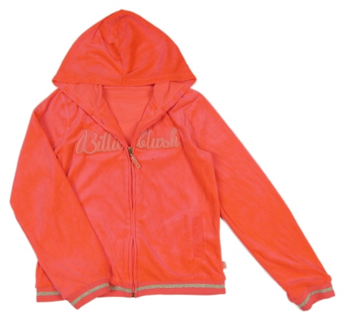 Neonově korálová sametová propínací mikina s nápisem a kapucí Billieblush