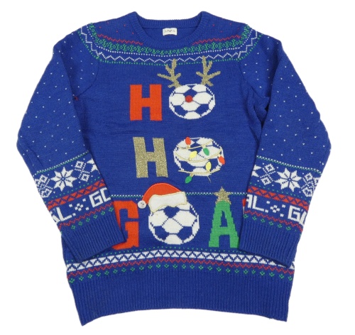 Safírový svetr s nápisy a míči s vánočním motivem a vzorem F&F