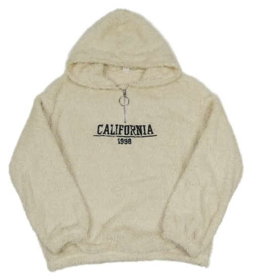 Světlebéžová chlupatá mikina s nápisem a kapucí Shein