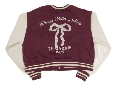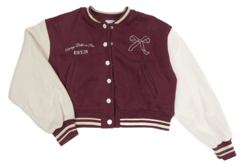Tmavovínovo-smetanová baseballová crop mikina s mašlí a pruhy ZARA