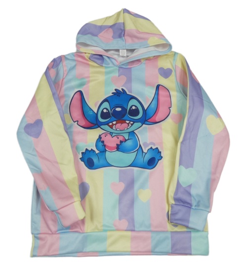 Barevná pruhovaná mikina se Stitchem a kapucí