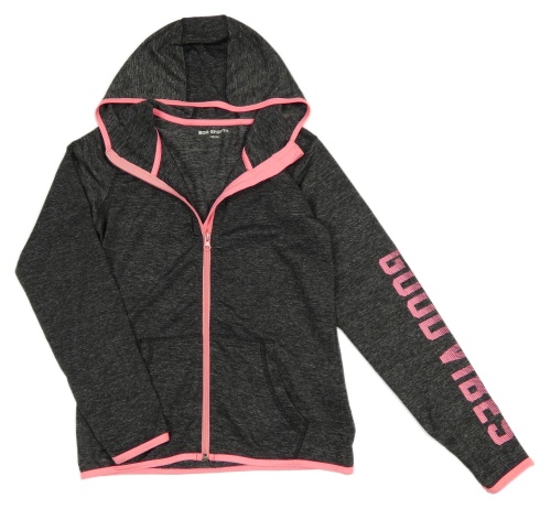 Černá melírovaná sportovní mikina s nápisem a kapucí