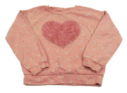 Broskvová oversize mikina s kytičkami a srdíčkem