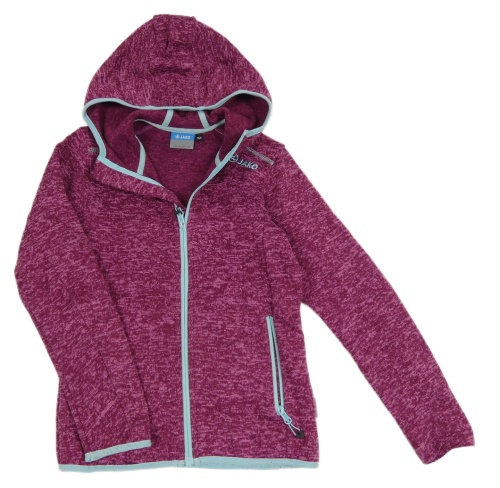Vínovo-tmavorůžová melírovaná pletená propínací mikina s kapucí JAKO
