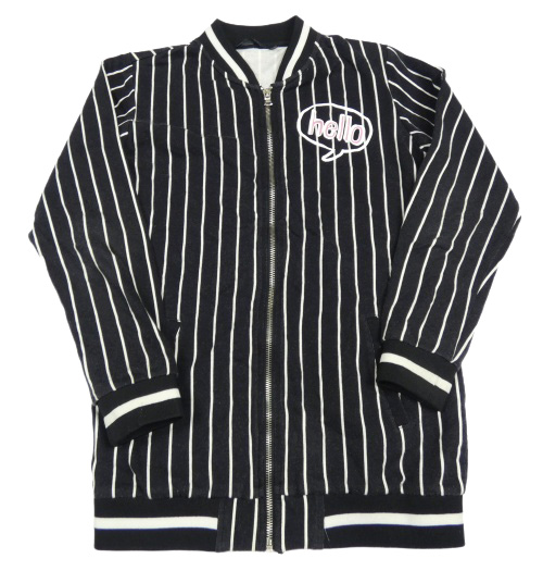 Černo-bílá pruhovaná propínací mikina s nápisem CoolCat