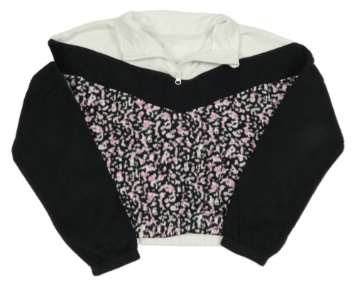 Bílo-černo-růžová vzorovaná crop fleecová mikina Nutmeg