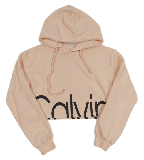Růžová crop mikina s nápisem a kapucí Calvin Klein