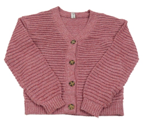 Světlevínový melírovaný žebrovaný propínací svetr YIGGA