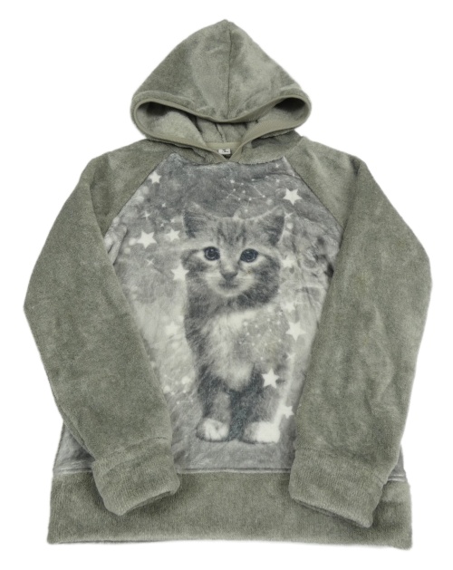 Šedá chlupatá mikina s kočkou a kapucí Yigga