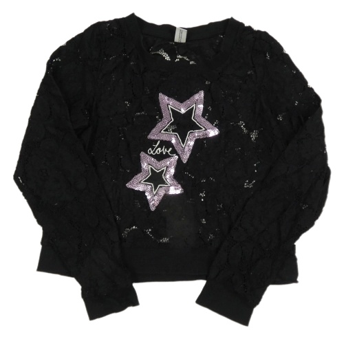 Černá krajková crop mikina s hvězdičkami z flitrů YIGGA