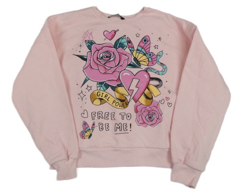 Světlerůžová crop mikina s růžemi a motýlky a srdíčky George