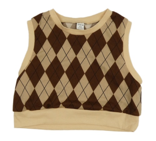 Hnědo-béžová károvaná crop vesta Shein