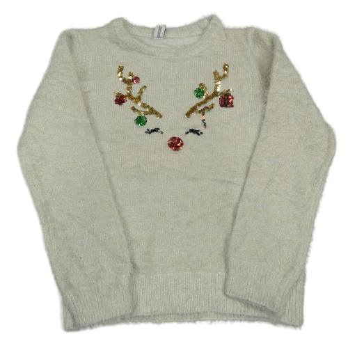 Smetanový třpytivý svetr se sobem z flitrů Yigga