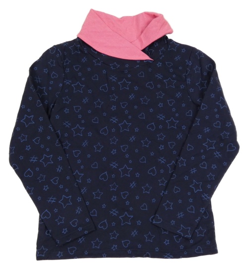Tmavomodrá mikina s hvězdičkami a srdíčky a komínovým límcem YIGGA