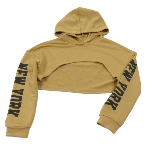 Béžová crop mikina s nápisem na rukávech a kapucí