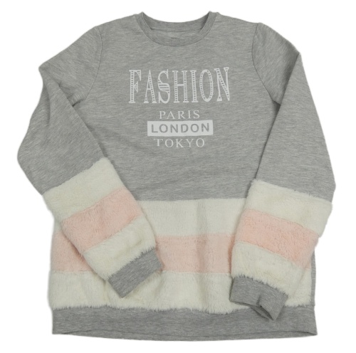 Šedá melírovaná mikina s nápisy a bílo-starorůžovou kožešinou PEP&CO