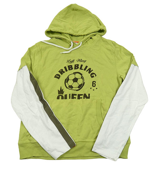 Zeleno-bílo-šedá mikina s nápisy a kapucí