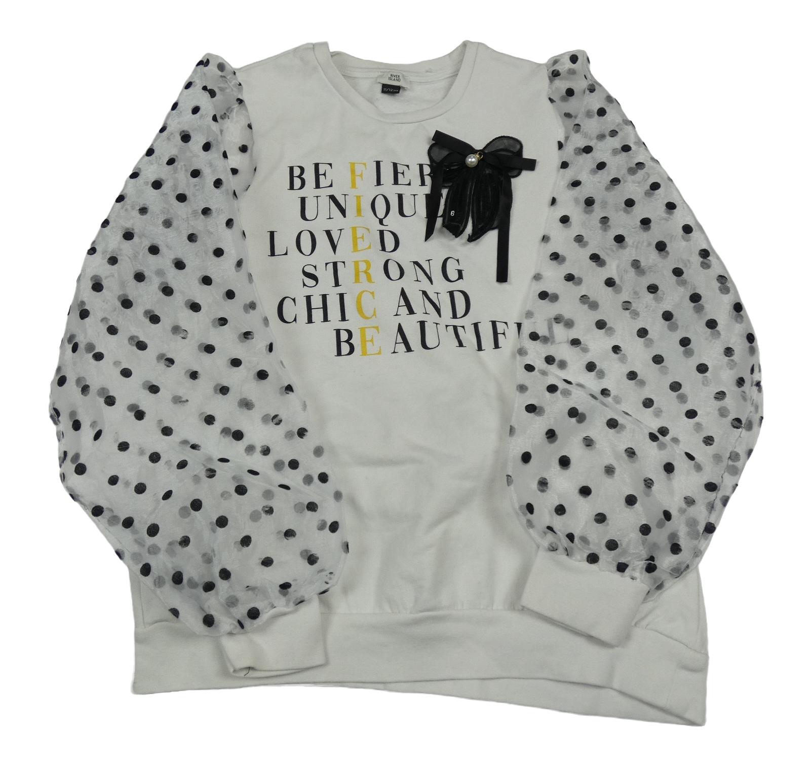 Bílá mikina s nápisy a tylovými puntíkatými rukávy River Island