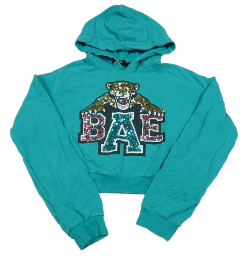 Zelená crop mikina s tygrem a kapucí Coolcat