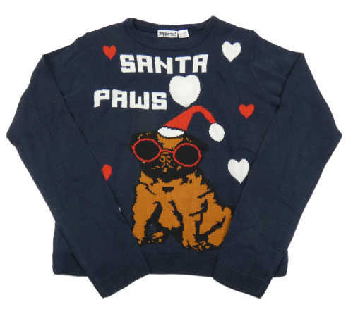 Tmavomodrý pletený svetr s pejskem s vánočním motivem a srdíčky Pepperts!