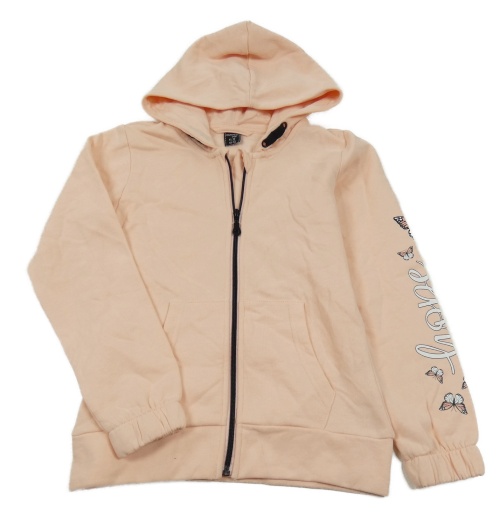 Broskvová propínací mikina s nápisem a kapucí Mana