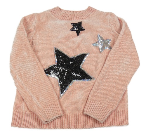 Světlerůžový melírovaný žinylkový svetr s hvězdičkami z flitrů C&A