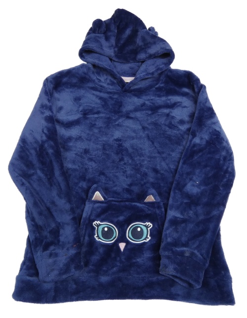 Tmavomodrá chlupatá mikina se sovou a kapucí