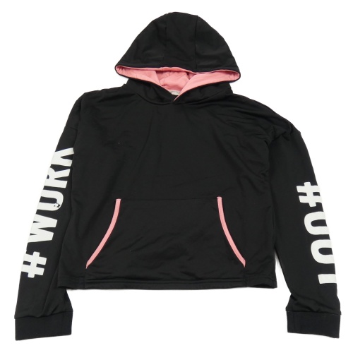 Černá thermo crop mikina s kapsou a nápisy a kapucí MINOTI