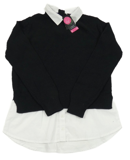 Nové - Černý svetr se všitou košilí F&F