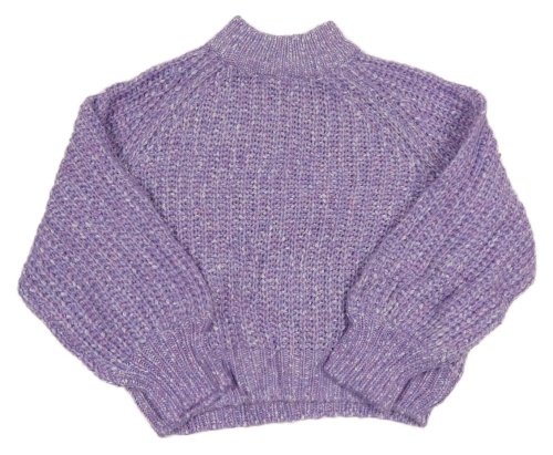 Fialový melírovaný žebrovaný svetrový oversize crop rolák DESTINATION