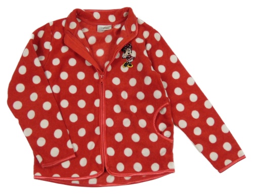 Červeno-bílá puntíkatá fleecová propínací mikina s Minnie