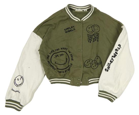 Khaki-bílá baseballová crop mikina se smajlíky H&M