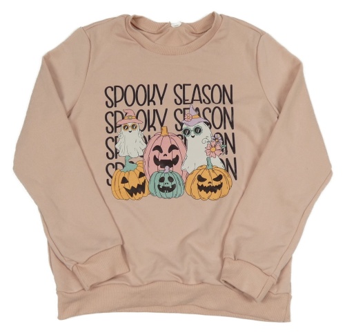 Světlerůžová mikina s dýněmi a duchy a nápisy