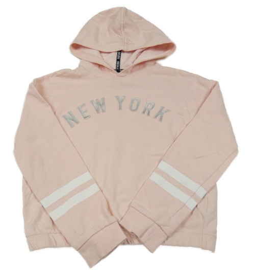 Světlerůžová crop mikina s nápisem a kapucí