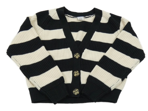 Černo-smetanový pruhovaný žebrovaný pletený propínací oversize crop svetr Page one young