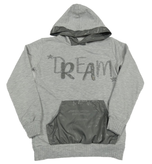 Světlešedá lehká mikina s nápisem a kapucí