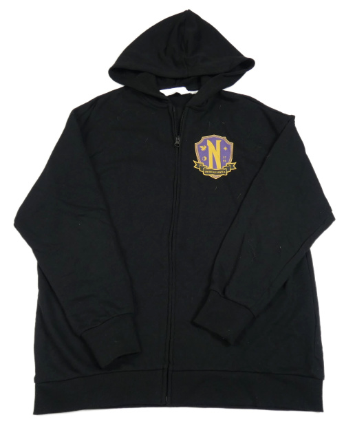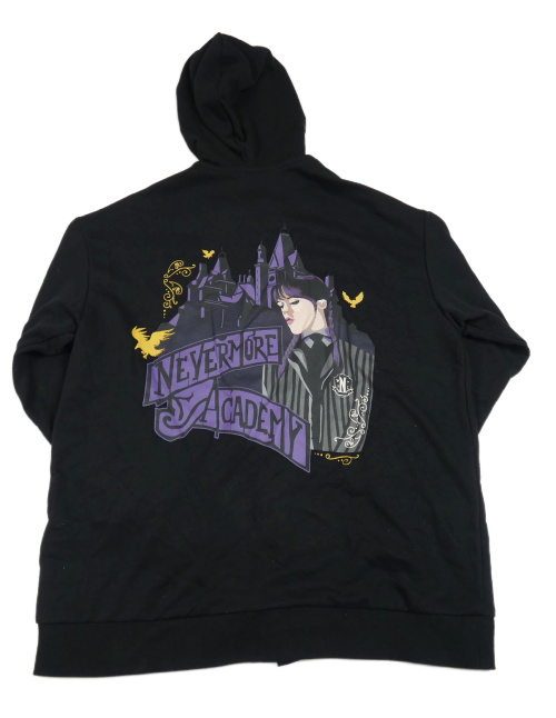 Černá propínací mikina se znakem a potiskem - Wednesday a kapucí H&M
