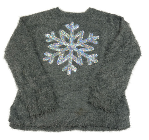 Tmavošedý chlupatý svetr s vločkou z flitrů C&A