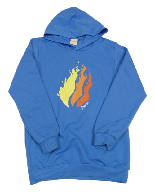 Modrá dlouhá mikina s potiskem a kapucí