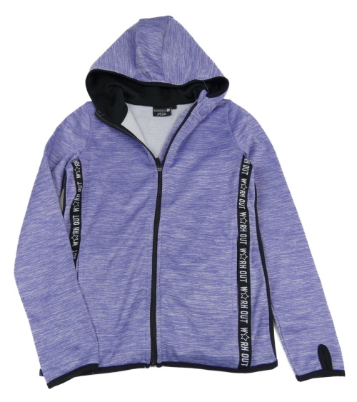Fialovo-bílo-černá melírovaná thermo propínací mikina s pruhy s nápisy a kapucí ERGEENOMIXX