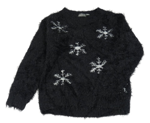 Černý chlupatý svetr s vločkami Alive