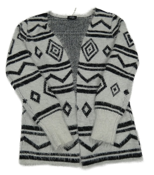 Světlešedo-černý vzorovaný chlupatý svetrový cardigan Page One Young