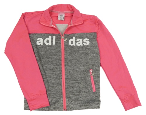 Šedo-neonově růžová melírovaná propínací sportovní mikina s nápisem Adidas