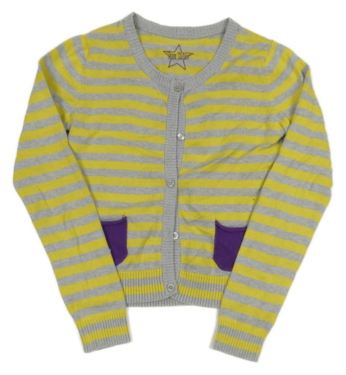 Šedo-žlutý pruhovaný propínací crop svetr Tom Tailor