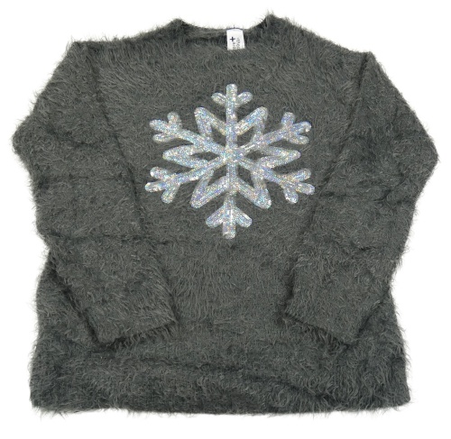 Tmavošedý chlupatý svetr s vločkou z flitrů C&A