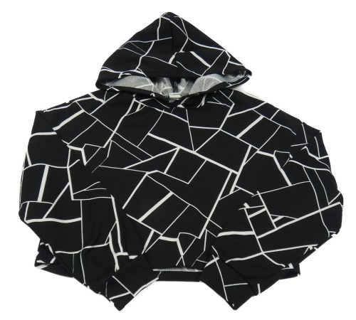 Černo-bílá vzorovaná crop lehká mikina s kapucí Shein